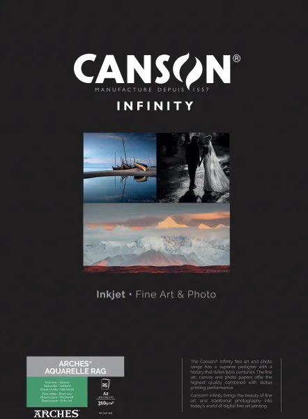 ARCHES® Aquarelle Rag est un prestigieux papier d'impression d'art qui offre aux photographes, aux artistes et aux imprimeurs, la possibilité de créer des impressions digitales de qualité beaux-arts sur un authentique papier ARCHES® pour des éditions limitées ou classiques.