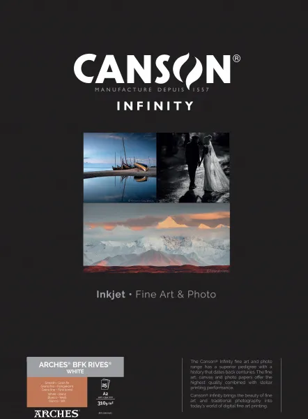 ARCHES® BFK Rives® White est un prestigieux papier d'impression d'art qui offre aux photographes, aux artistes et aux imprimeurs, la possibilité de créer des impressions digitales de qualité beaux-arts sur un authentique papier ARCHES® pour des éditions limitées ou classiques.