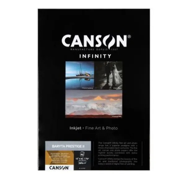 Canson® Infinity Baryta Prestige 340 g/m² est composé d'alpha-cellulose sans acide et d'une base en papier blanc coton, avec une pellicule en sulfate de baryum véritable. Ce papier baryté doux et brillant évoque l'aspect et l'esthétique des papiers argentiques traditionnels.