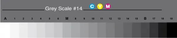 Petite échelle de gris et guide de séparation des couleurs - qualité et précision en reproduction d’image, équivalente à la Q14 Kodak Dédié au contrôle qualité de votre flux de production, pour photographes, imprimeurs et autres professionnels de la couleur.